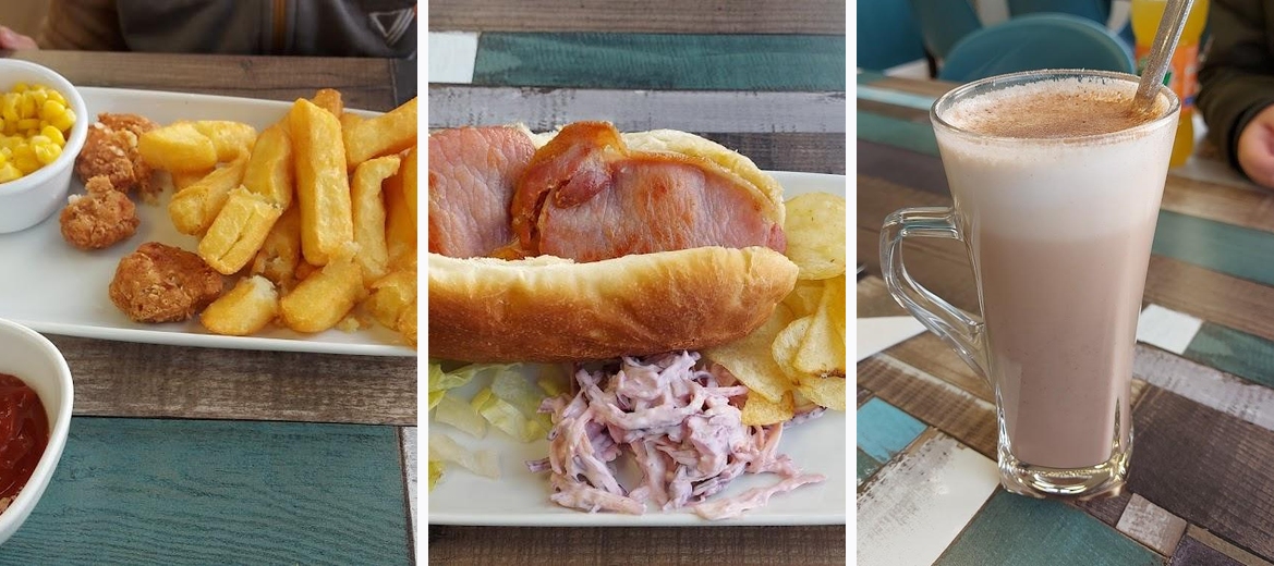 1st time visiting, got given a menu and told order at the counter. Ordered: kids chicken nuggets and chips, orange fruit shoot, bacon roll and hot choclate all come to £19. Staff were friendly, had the heater going which helped as it was cold outside and view of the beach. Will be returning soon!